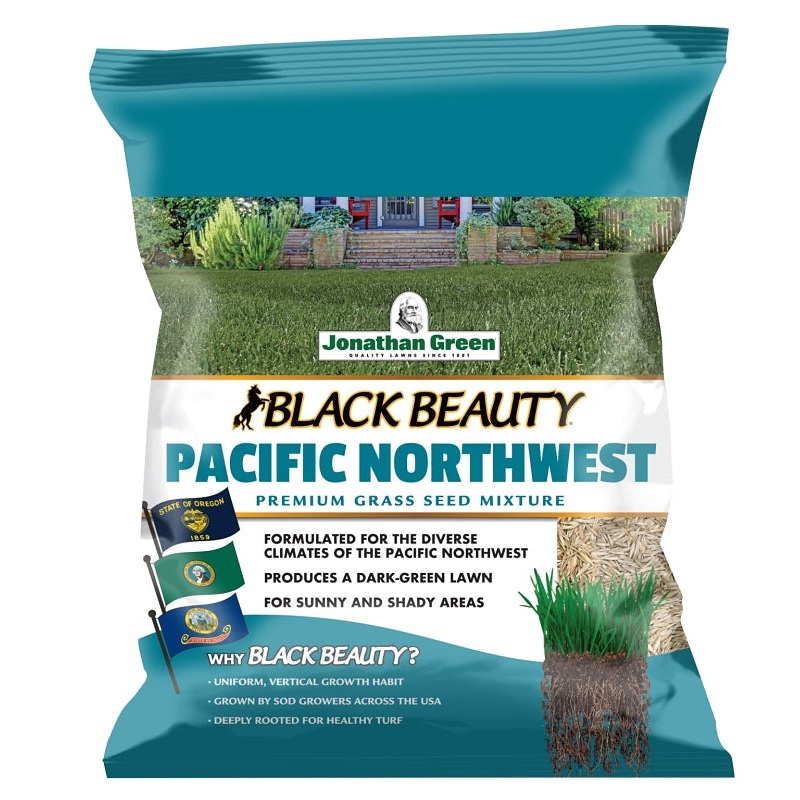 Black Beauty Pacific Northwest Grass Seed is a premium, all-purpose grass seed mixture specifically designed for the diverse climates of the Pacific Northwest, including Washington, Oregon and Idaho. Black Beauty Pacific Northwest Grass Seed thrives in full sun to medium-shaded lawn areas and grows an attractive, naturally dark-green lawn. Black Beauty Pacific Northwest is naturally insect and disease-resistant. Grass seed germinates in 10 to 20 days. Black Beauty grass seed varieties root deeply, possess a waxy leaf coating to preserve moisture and have a uniform growth habit.Specially formulated for the diverse climates of the Pacific NorthwestContains an expert mixture of Black Beauty Tall Fescues, Perennial Ryegrass and Kentucky BluegrassGrows dark green, drought-resistant and highly durable lawnsGrows excellent in full sun to medium shaded areas
