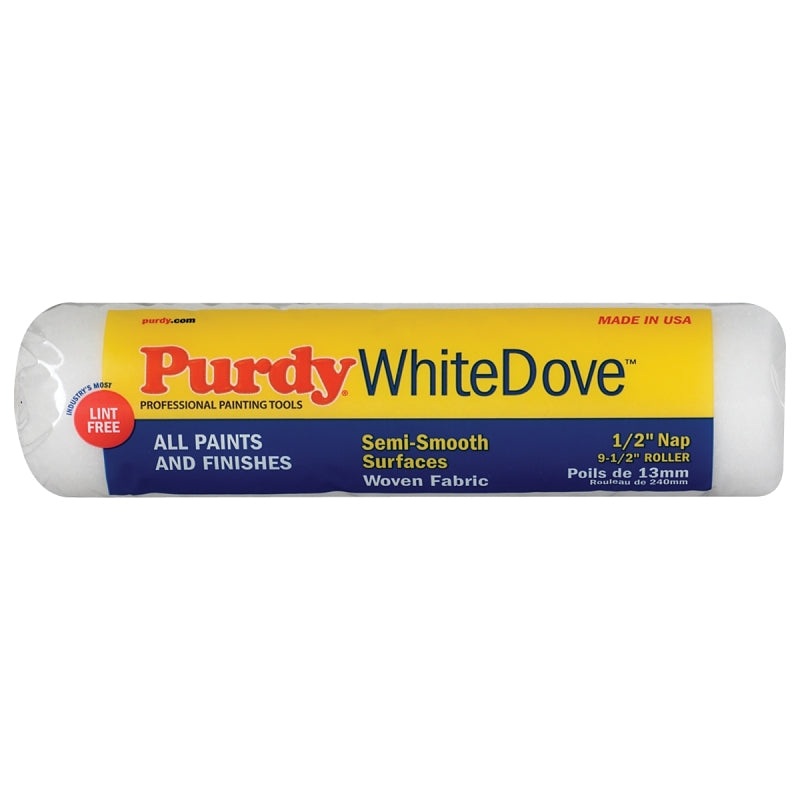 Purdy White Dove Roller Cover, 1/2 in Thk Nap, 9-1/2 in L, Woven Dralon Fabric Cover, 1-1/2 in Core, Core Material: Polypropylene, Surface Type: Semi-Rough, Semi-Smooth, Paint Type: Latex, Oil-Based